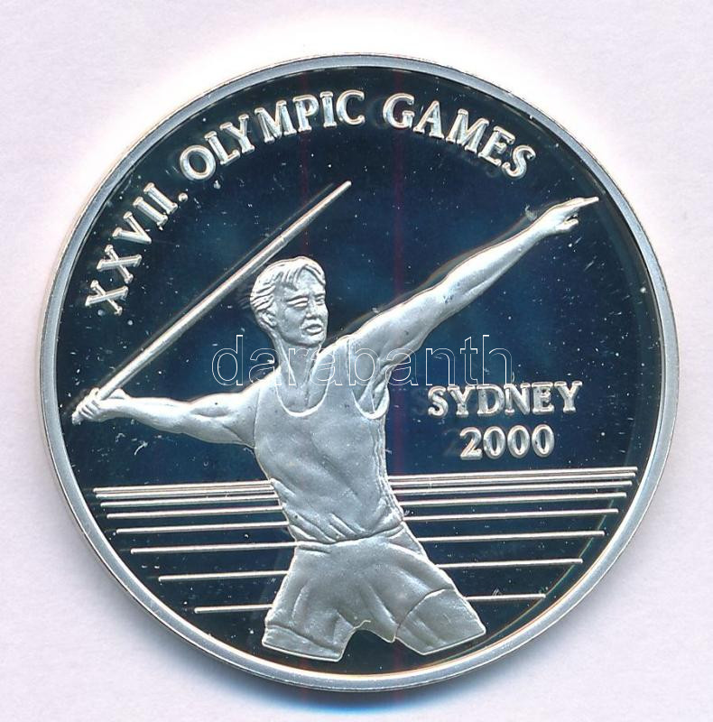 Uganda 1999. 1000Sh Ag "2000. évi Olimpiai Játékok Sydney - Gerelyhajítás" T:PP ujjlenyomat, folt Uganda 1999. 1000 Shilling Ag "Olympic Games 2000 in Sydney - Javelin throw" C:PP fingerprints, spot Krause KM#70