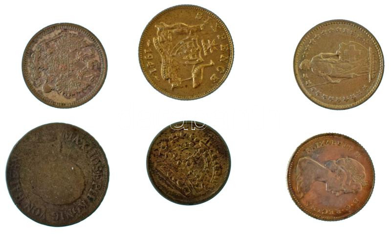 Vegyes, 6db-os külföldi Ag/billon érmetétel, benne Kanada, Svájc, Svédország, Orosz Birodalom, Bajorország, Ausztrália T:XF-F