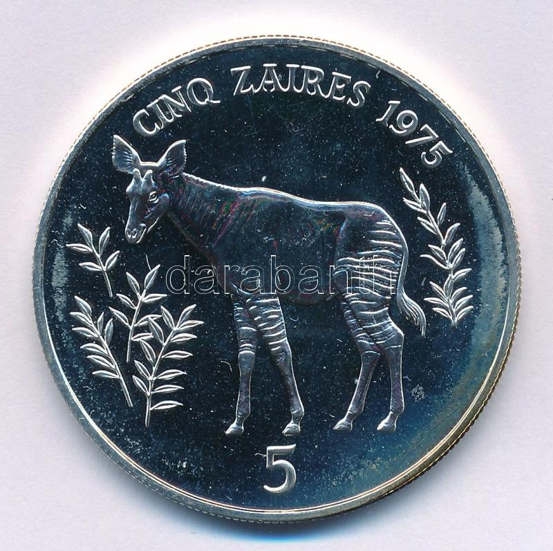 Zaire 1975. ... https://www.darabanth.com/hu/514-Filatelia-kepeslap-numizmatika-mutargy-konyv-papirregiseg-ekszer-aukcio/515.0/Numizmatika/Kulfoldi-fem-es-ezustpenzek~1317/Zaire-1975-5Z-Ag-Allatvedelem-Okapi-TUNC3Cbr-3E-Zaire-1975-5-Zaires-Ag-Conservation-Okap~II3269686