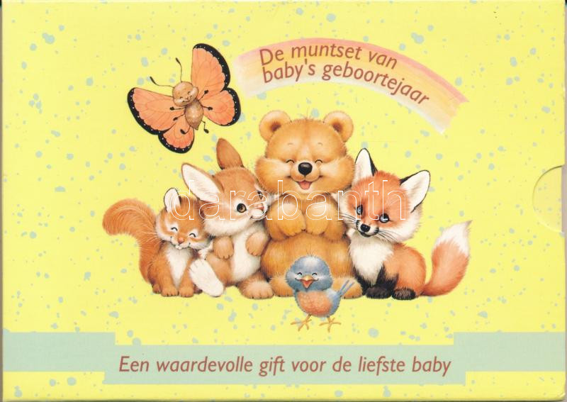 Leírás: Hollandia 2001. 5c-2 1/2G (6xklf) + "Baby" fém emlékérem dísztokos szettben T:UNC