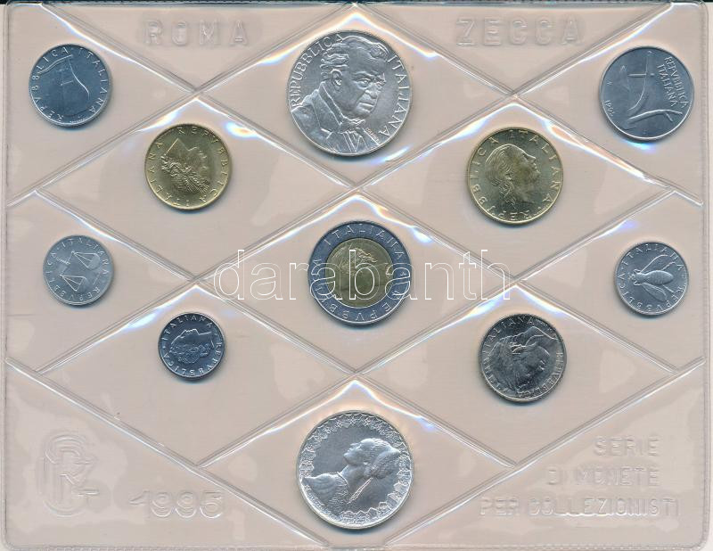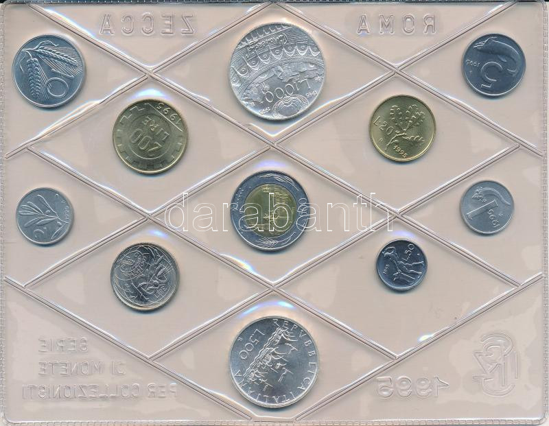 Olaszország 1995. 1L-1000L (11xklf) forgalmi sor fóliatokban és műbőrtokban, tanúsítvánnyal. Benne: 1995R 500L Ag "Kolumbusz hajói", 1995R 1000L Ag "Pietro Mascgani halálának 50. évfordulója" T:UNC