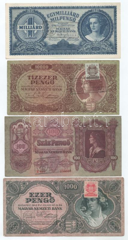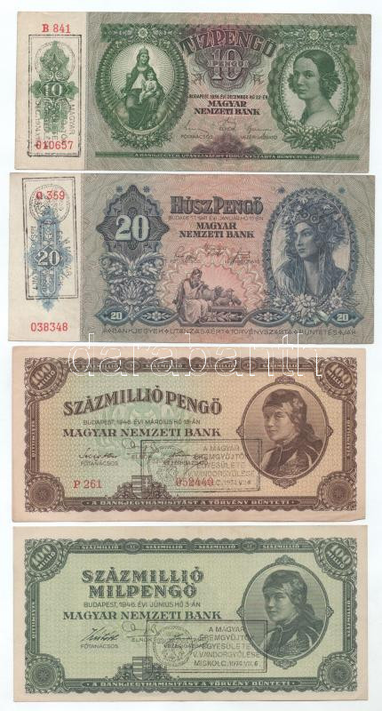 1930-1946. 10P-1.000.000.000MP (8xklf), mindegyik fekete "A Magyar Éremgyűjtők Egyesületének V. Vándorgyűlése, Miskolc 1974.VII.7." felülbélyegzéssel T:XF-F