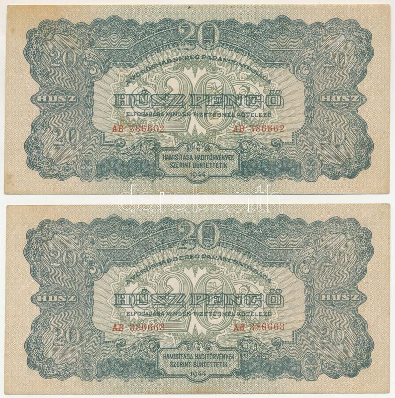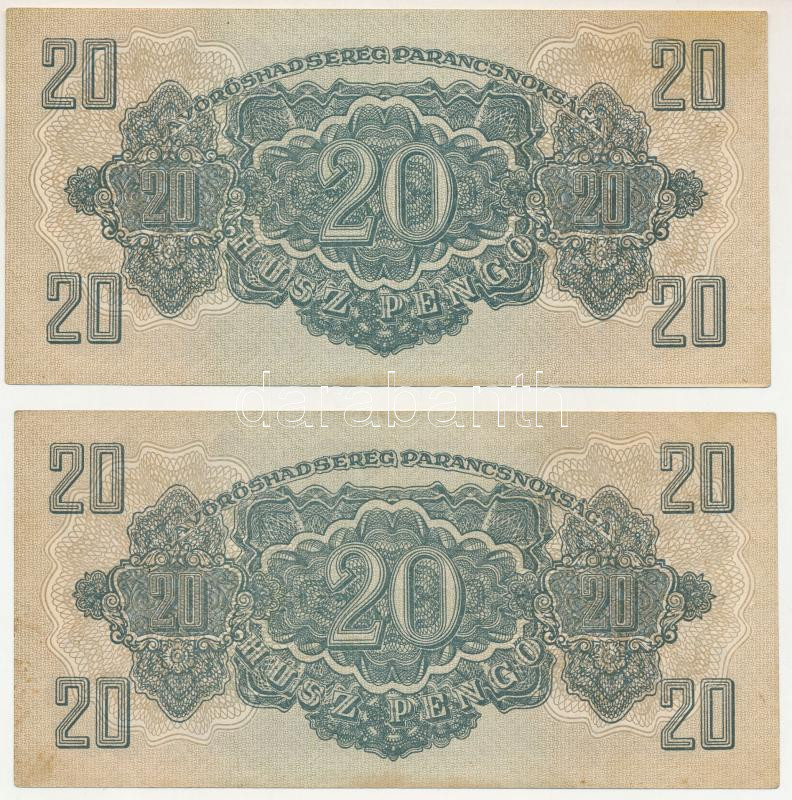 Leírás: 1944. 20P "A Vöröshadsereg Parancsnoksága" (2x) sorszámkövetők "AB 386662 - AB 386663" T:XF fo.