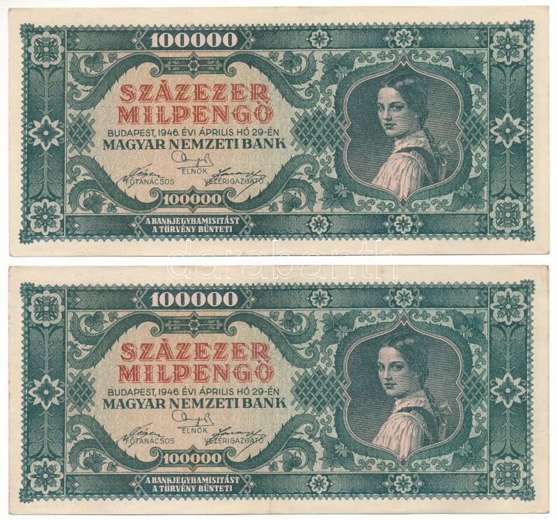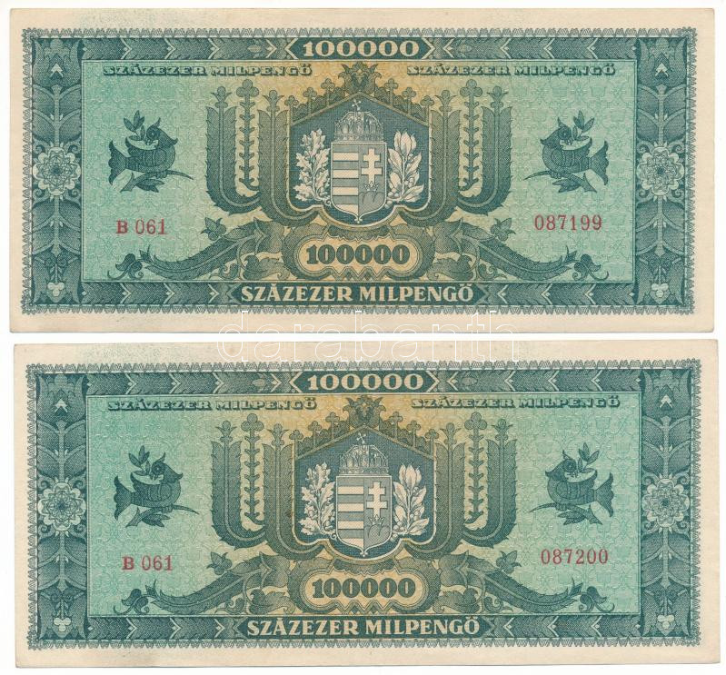 Leírás: 1946. 100.000MP (2x) sorszámkövetők "B 061 087199 - B 061 087200" T:XF