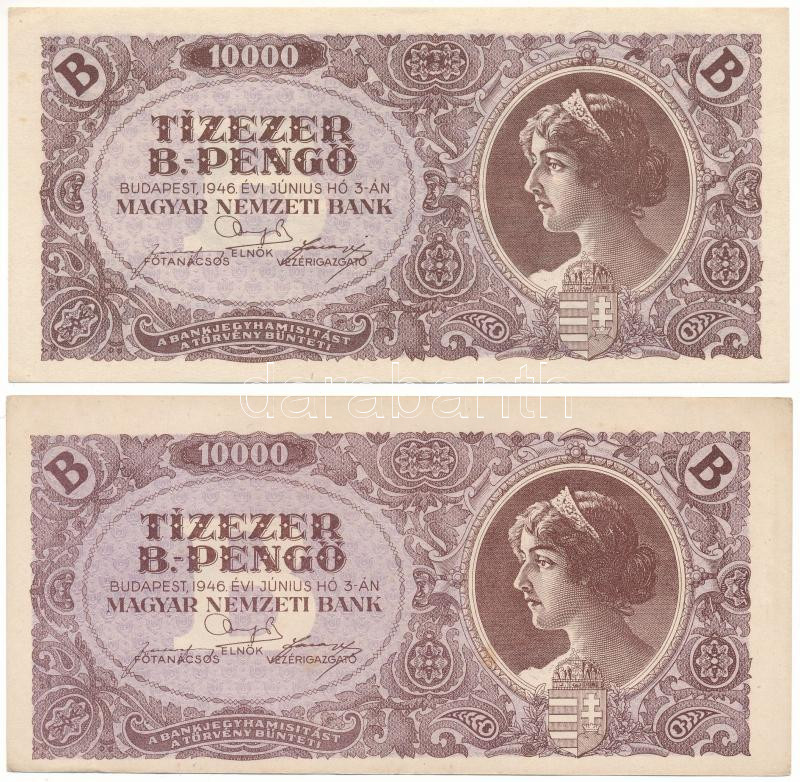 Leírás: 1946. 10.000BP enyhén eltolódott nyomattal (2x) T:AU,XF