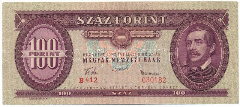 Leírás: 1957. 100Ft "B 412 030182" T:F