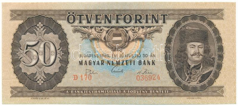 Leírás: 1969. 50Ft "D 170 036924" T:AU,XF nyomdai papírráncok