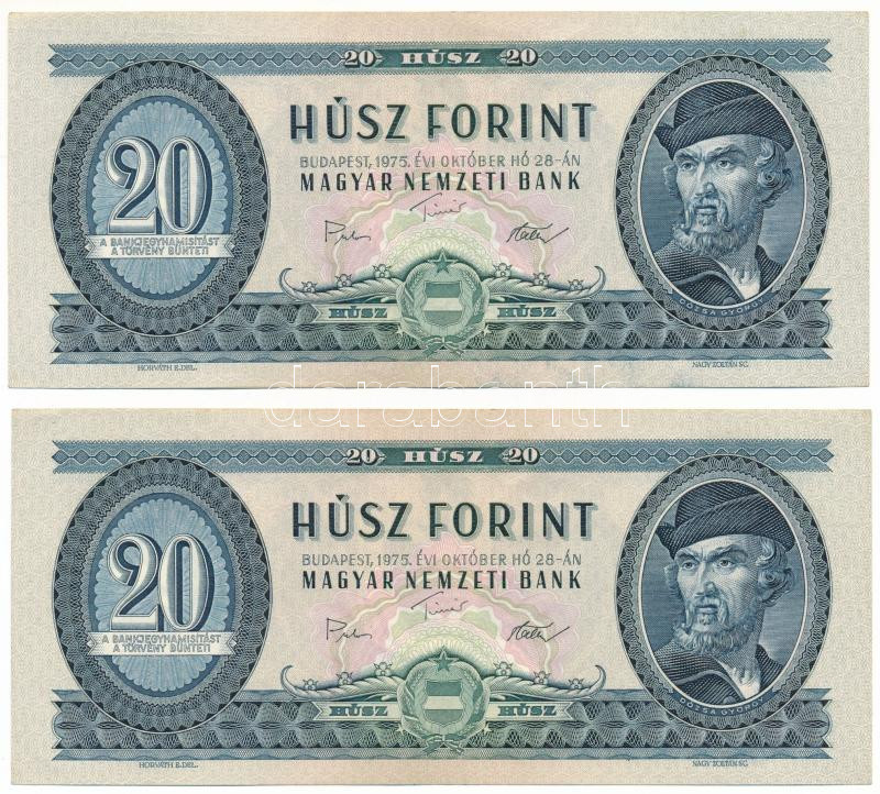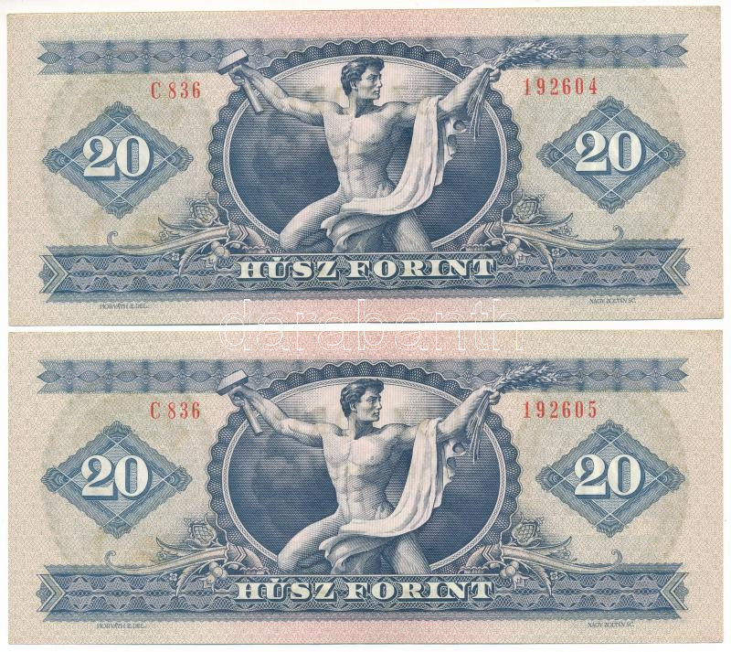Leírás: 1975. 20Ft (2x) sorszámkövetők "C 836 192604 - C 836 192605" T:AU