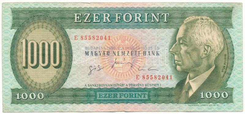 1996. 1000Ft "E 85582041" T:F Adamo F48 https://www.darabanth.com/hu/514-Filatelia-kepeslap-numizmatika-mutargy-konyv-papirregiseg-ekszer-aukcio/515.0/Numizmatika/Magyar-bankjegyek~1309/1996-1000Ft-E-85582041-TF-Adamo-F48~II3475909
