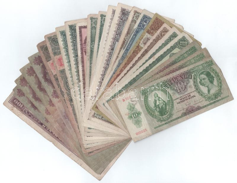 Leírás: Vegyes, 23db-os (13xklf), Pengő bankjegyekből álló tétel T:F,VG, kis anyaghiány, több firkált