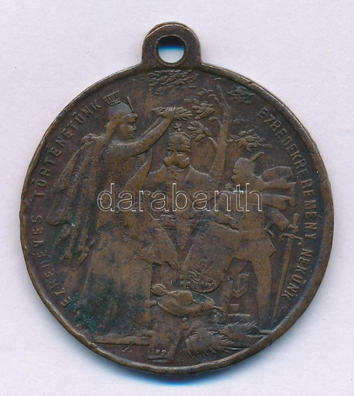 Leírás: 1896. "Ezredéves Történetünk Ezredekre Remény Nekünk - Honfoglalás" millenniumi kétoldalas, bronz emlékérem füllel. Szign.: Steiner A. (32mm) T:VF ph.