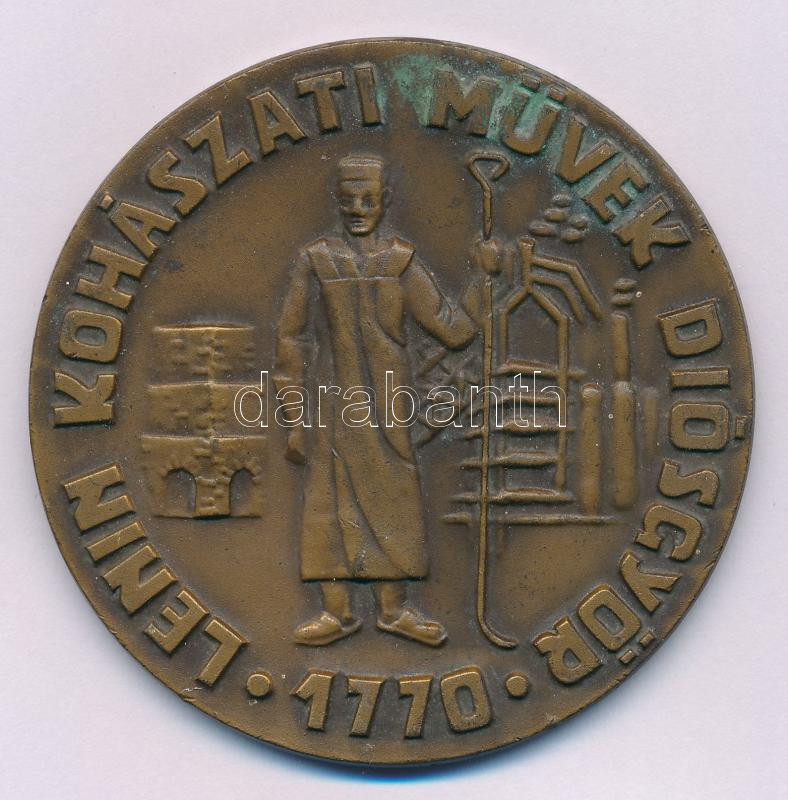 Leírás: 1970 k. "Lenin Kohászati Művek Diósgyőr 1770 " egyoldalas bronz emlékérem (62mm) T:AU patina