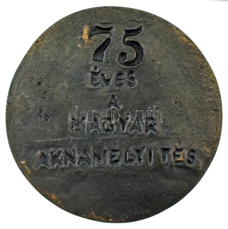 Leírás: 1983. (DN) "75 éves a magyar aknamélyítés " kétoldalas, öntött bronz plakett (~66-67mm) T:AU