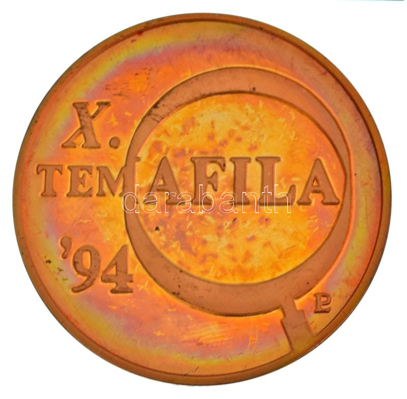 1994. "X. TEMAFILA '94 / Magyar Bélyeggyűjtők Országos Szöve... https://www.darabanth.com/hu/514-Filatelia-kepeslap-numizmatika-mutargy-konyv-papirregiseg-ekszer-aukcio/515.0/Numizmatika/Magyar-emlekveretek-plakettek~1312/1994-3Cem3EX-TEMAFILA-94-Magyar-Belyeggyujtok-Orszagos-Szovetsege-Budapest3Cem3E-ketold~II3423788