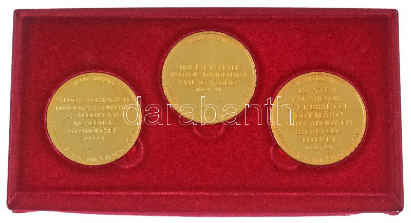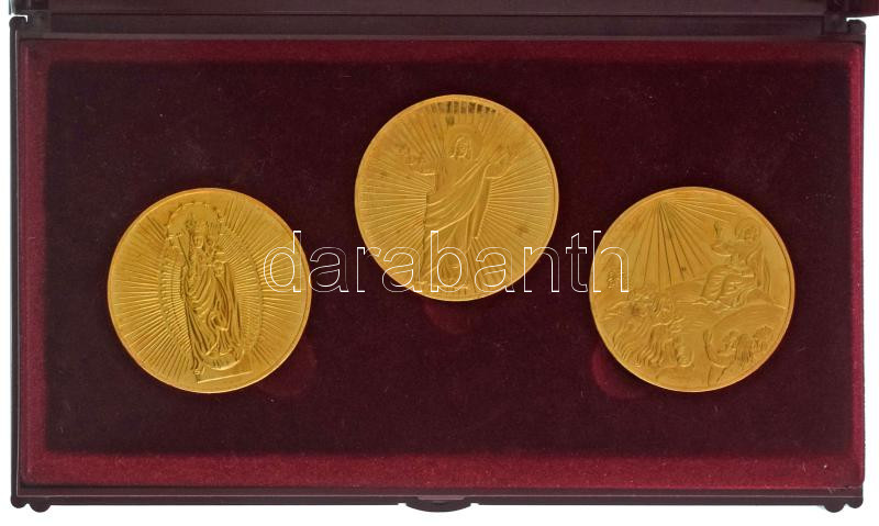Leírás: 2000. "Jézus Urunk Születésének 2000. Évfordulójára " aranyozott fém emlékérmek (3xklf) teljes sor, közös dísztokban (42,5mm), (dísztok: ~102x182mm) T:AU (eredetileg PP), folt, patina