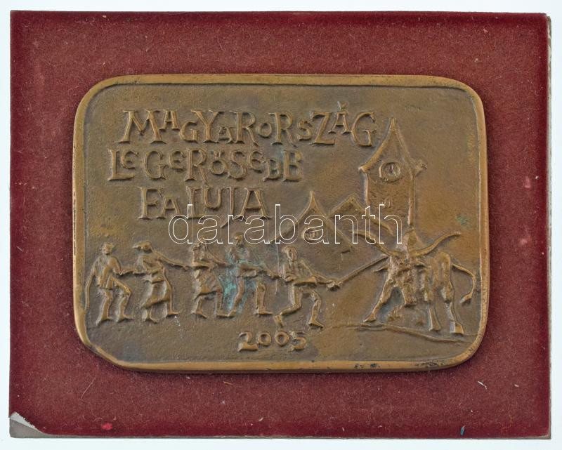 Leírás: 2005. "Magyarország legerősebb faluja" egyoldalas, öntött bronz plakett, fa talpon (90x126mm) T:AU kis patina