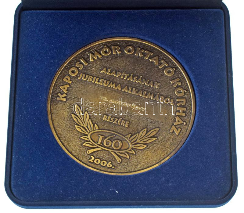 2006. "Kaposi Mór Oktató Kórház - Somogy megye Kaposvár - Alapítva 1846 / Kaposi Mór Oktató Kórház alapításának jubileuma alkalmából Dr. Mike György részére - 160 - 2006" bronz érdemérem, eredeti tokban (106mm) T:AU