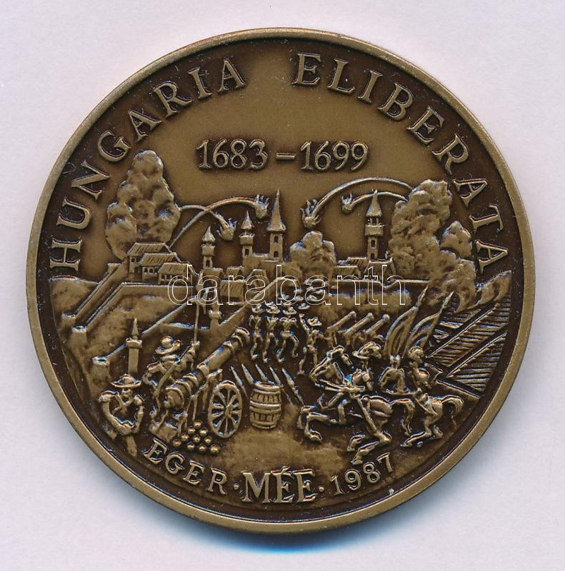 Leírás: Bognár György (1944-) 1987. "Hungaria Eliberata 1683-1699 - Eger MÉE 1987 " kétoldalas bronz emlékérem (42,5mm) T:AU patina