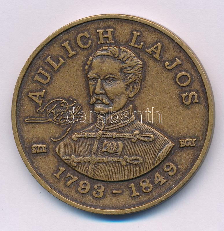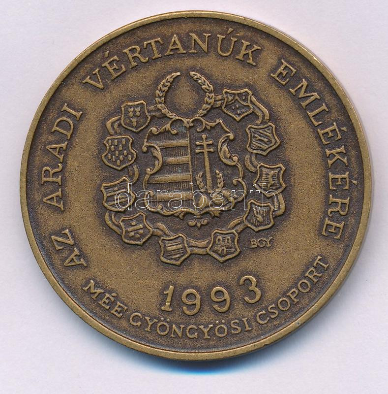 Leírás: Bognár György (1944-) 1993. "Aulich Lajos / Aradi Vértanúk - MÉE Gyöngyös " kétoldalas bronz emlékérem (42,5mm) T:UNC