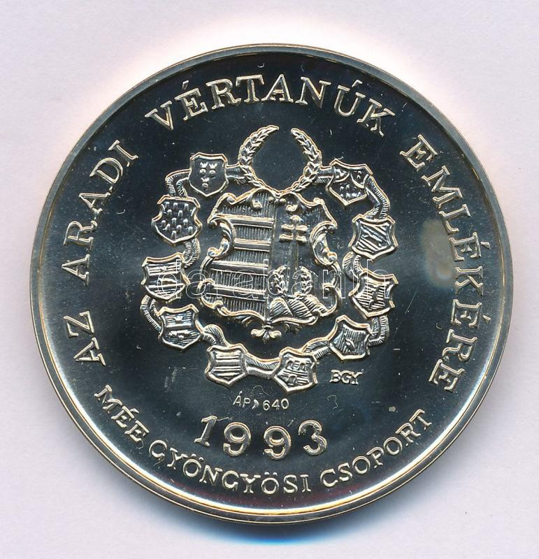 Leírás: Bognár György (1944-) 1993. "MÉE Gyöngyösi Csoport - Aradi Vértanúk / Aulich Lajos " kétoldalas, jelzett Ag emlékérem kapszulában (34,50g/0.640/42,5 mm) T:UNC, kis folt