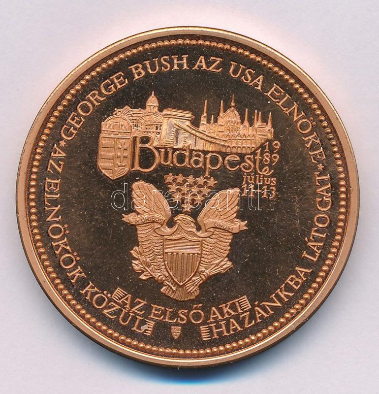 Leírás: Bozó Gyula (1913-2004) 1989. "George Bush látogatása Magyarországon" kétoldalas bronz emlékérem (42,5mm) T:PP ujjlenyomat