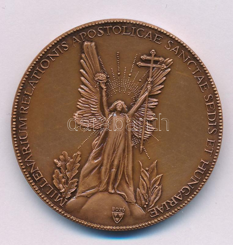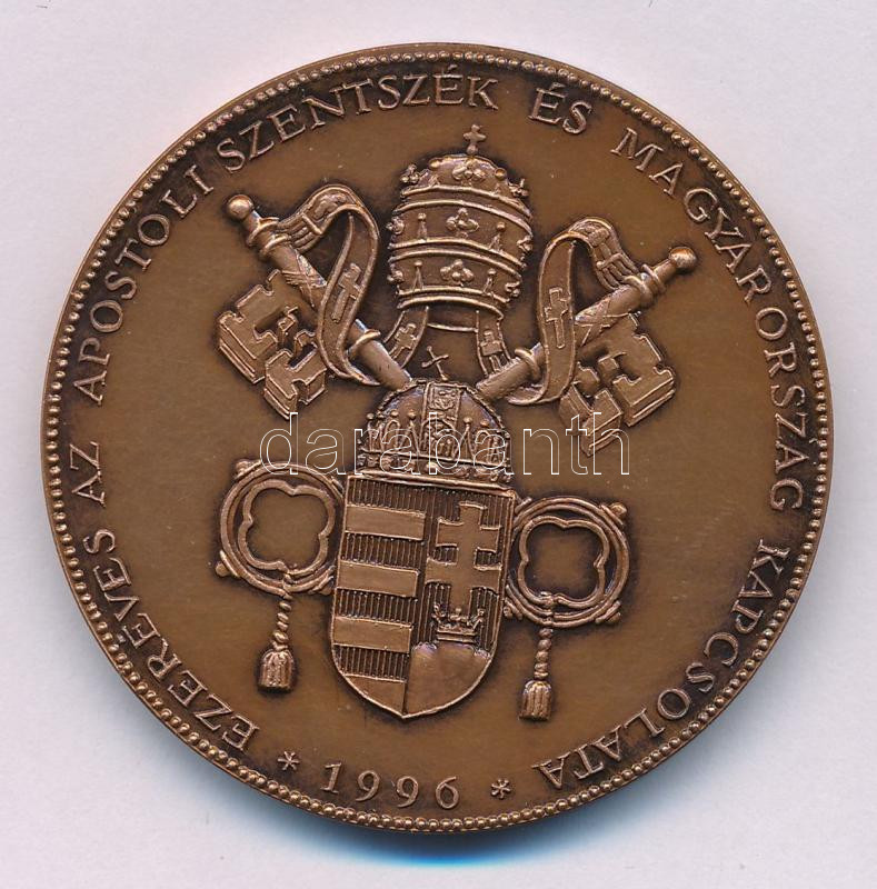 Bozó Gyula (1913-2004) 1996. "Ezeréves az Apostoli Szentszék és Magyarország kapcsolata / Millenarium relationis apostolicae sanctae sedis et Hungariae" kétoldalas bronz emlékérem (42,5mm) T:AU kis patina