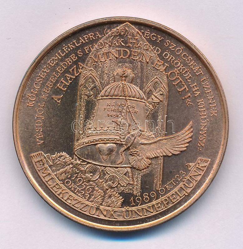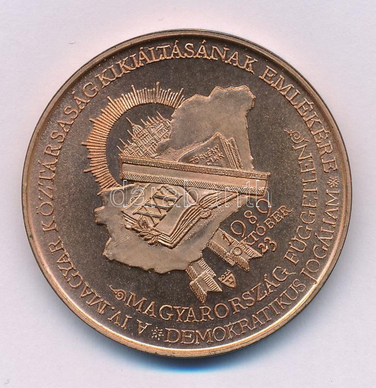 Bozó Gyula (1913-) / Szabó Géza (1939-) 1989. "A IV. Magyar Köztársaság kikiáltásának emlékére / Magyarország független demokratikus jogállam" bronz, kétoldalas emlékérem (42,5mm) T:AU