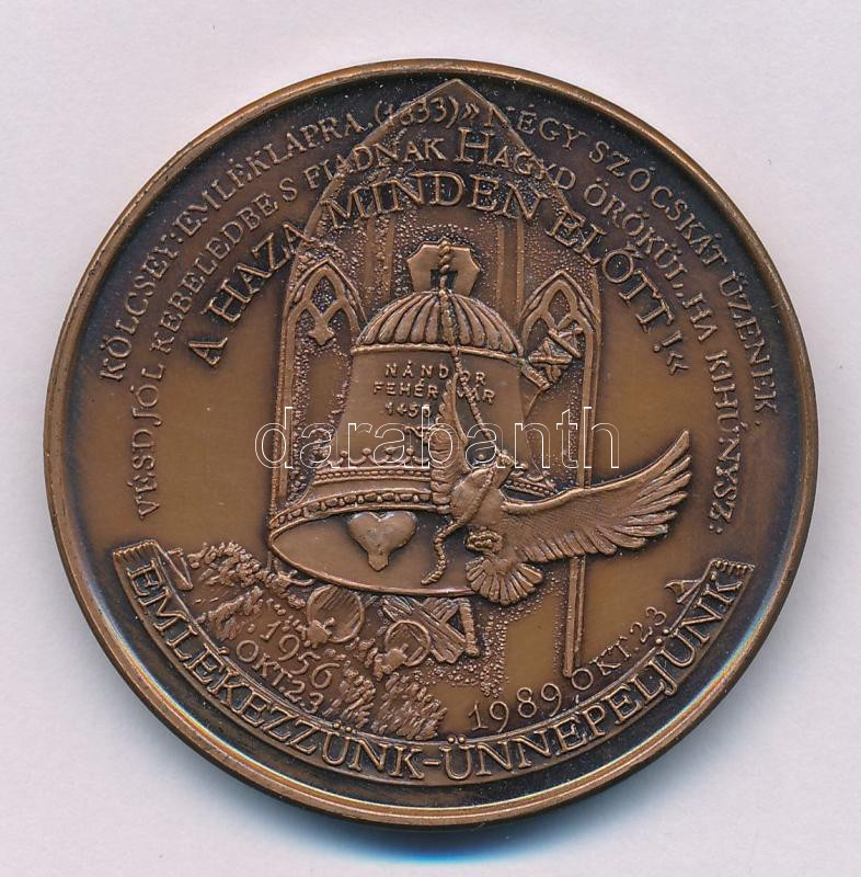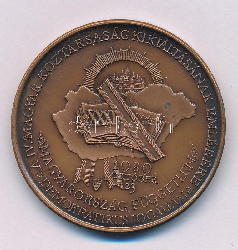Bozó Gyula (1913-) / Szabó Géza (1939-) 1989. "A IV. Magyar Köztársaság kikiáltásának emlékére / Magyarország független demokratikus jogállam" bronz, kétoldalas emlékérem (42,5mm) T:AU patina