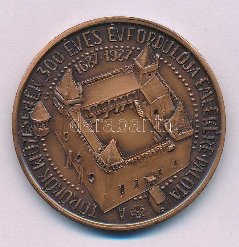 Buda István (1952-) 1987. MÉE "Pálfy Tamás Palotai Várkapitány 1571-1581 / A törökök kiűzésének 300 éves évfordulója emlékére 1687-1987 - Palota" kétoldalas bronz emlékérem (42,5mm) T:AU patina
