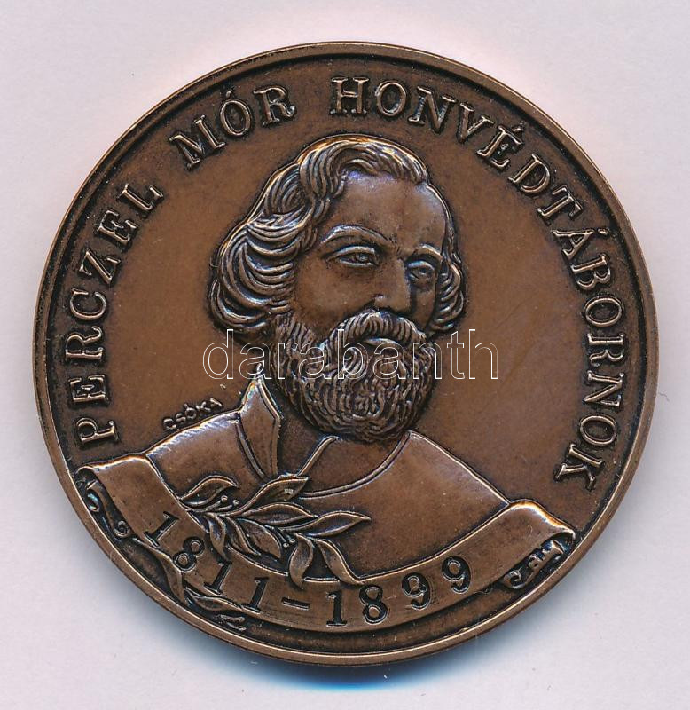 Csóka Zsuzsanna (1962-) 1998. "Perczel Mór honvédtábornok 1811-1899 / MÉE - A szabadságharc 150. évfordulójára - Az ozorai győztes" kétoldalas bronz emlékérem (42,5mm) T:AU kis patina