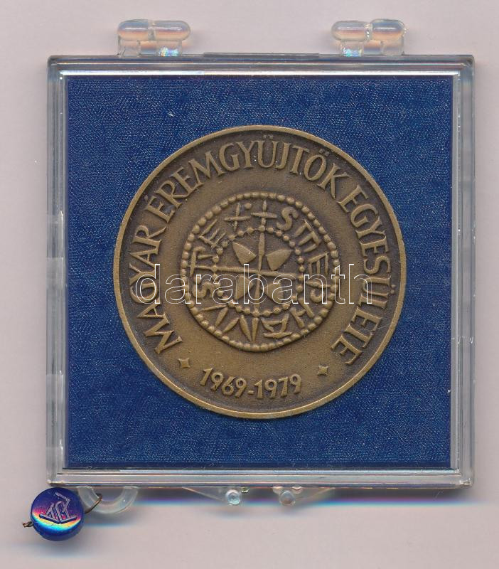 Leírás: Csucs Viktória (1934-1993) 1979. "Magyar Éremgyűjtők Egyesülete 1969-1979 " kétoldalas bronz emlékérem eredeti, plombált "ÁPV" műanyag tokban (42,5mm) T:UNC