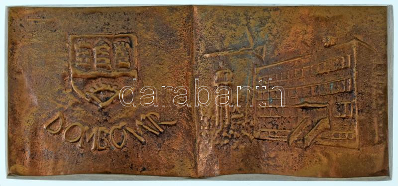 Leírás: DN "Dombóvár " nyitott könyv alakú, egyoldalas öntött bronz plakett (~63x135mm) T:AU