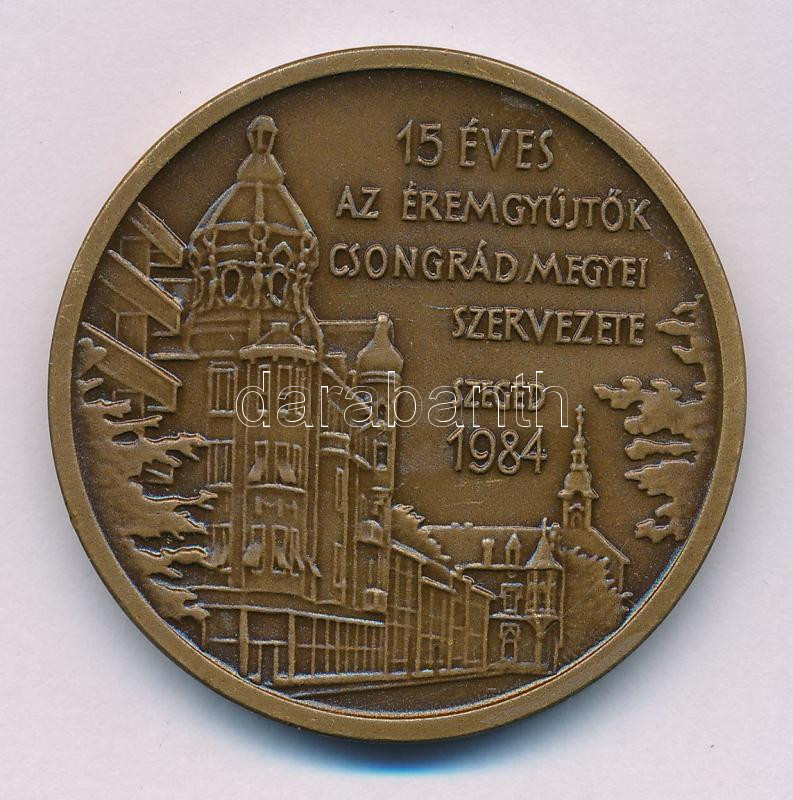Leírás: Fritz Mihály (1947-) 1984. "15 éves az Éremgyűjtők Csongrád megyei szervezete Szeged 1984 " kétoldalas bronz emlékérem (42,5mm) T:AU