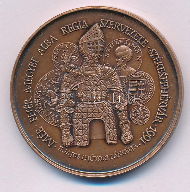 Fritz Mihály (1947-) / Szabó Géza (1939-) 1991. "II. Ulászló - 1490 - 1516 - 1526 - II. Lajos / II. Lajos ifjúkori páncélja - MÉE Fejér megyei Alba Regia Szervezete - Székesfehérvár" kétoldalas bronz emlékérem sérült kapszulában (42,5mm) T:UNC