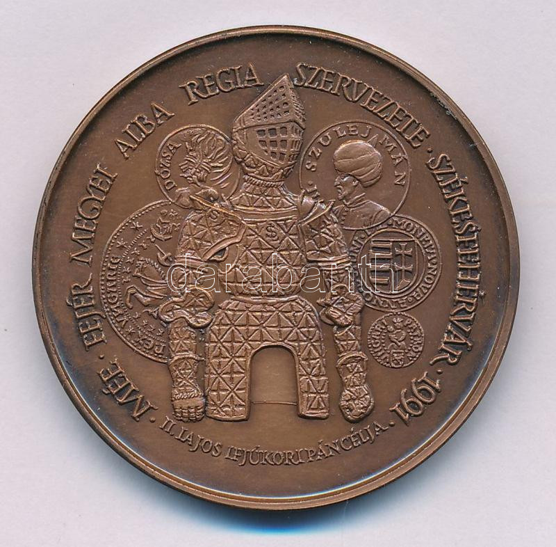 Fritz Mihály (1947-) / Szabó Géza (1939-) 1991. "II. Ulászló - 1490 - 1516 - 1526 - II. Lajos / II. Lajos ifjúkori páncélja - MÉE Fejér megyei Alba Regia Szervezete - Székesfehérvár" kétoldalas bronz emlékérem (42,5mm) T:AU patina