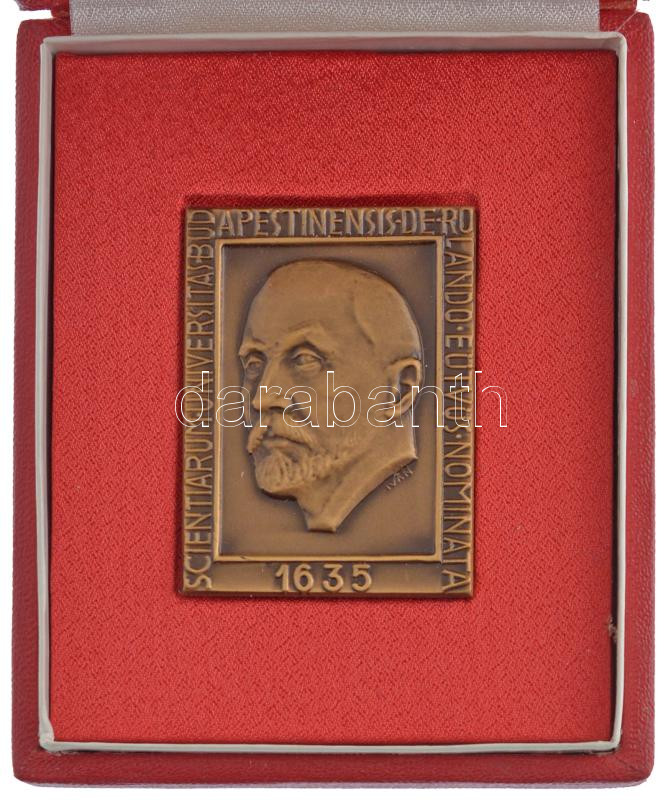 Iván István (1905-1968) 1960. "Az Eötvös Lóránd Tudományegyetem 325 éves Jubileuma" bronz emlékplakett eredeti dísztokban (55x40mm) T:1-,2 Hungary 1960. "325th Anniversary of the Eötvös Lóránd University - SCIENTIARUM UNIVERSITAS BUDAPESTINENSIS DE ROLANDO EÖTVÖS NOMINATA 1635" bronze commemorative plaque. Sign.: István Iván (55x40mm) C:AU,XF
