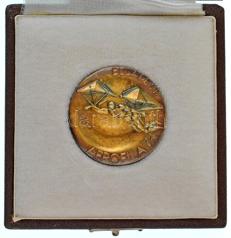 Kiss Nagy András (1930-1997) 1974. "Budapest Aerofila 74 / Nemzetközi Légiposta-Bélyeg Kiállítás Budapest" kétoldalas, peremén jelzett Ag emlékérem eredeti dísztokban (41,10g/0.750/40mm) T:AU, patina