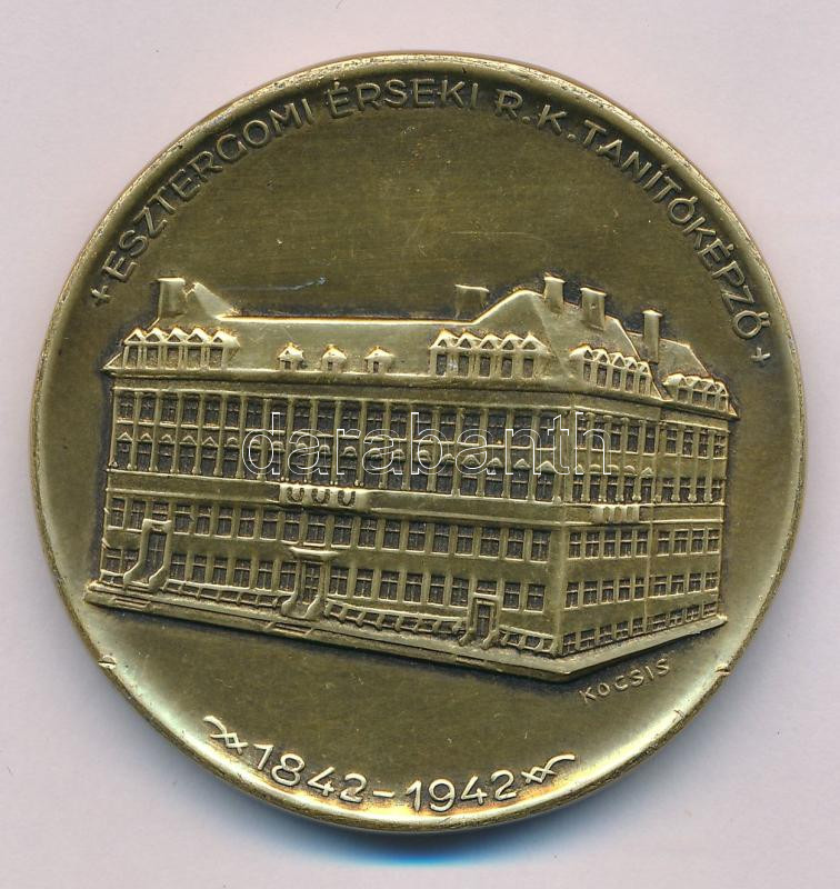 Leírás: Kocsisné Gerencsér Anna (1911-2003) 1942. "Elődeink nyomában - Istenért - Hazáért / Esztergomi Érseki R.K. Tanítóképző - 1842-1942" sárgarézzel bevont Al emlékérem (49mm) T:AU