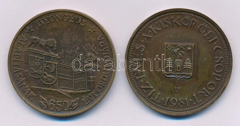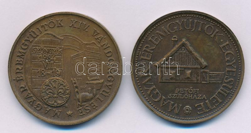 Lapis András (1942-) 1981. "10 éves a Kiskőrösi Csoport / Petőfi szülőháza" kétoldalas bronz emlékérem (42,5mm) + Bognár György (1944-) 1984. "Gyöngyös alapításának 650. évfordulója / MÉE XIV. Vándorgyűlése Gyöngyös" kétoldalas bronz emlékérem (42,5mm) T:XF