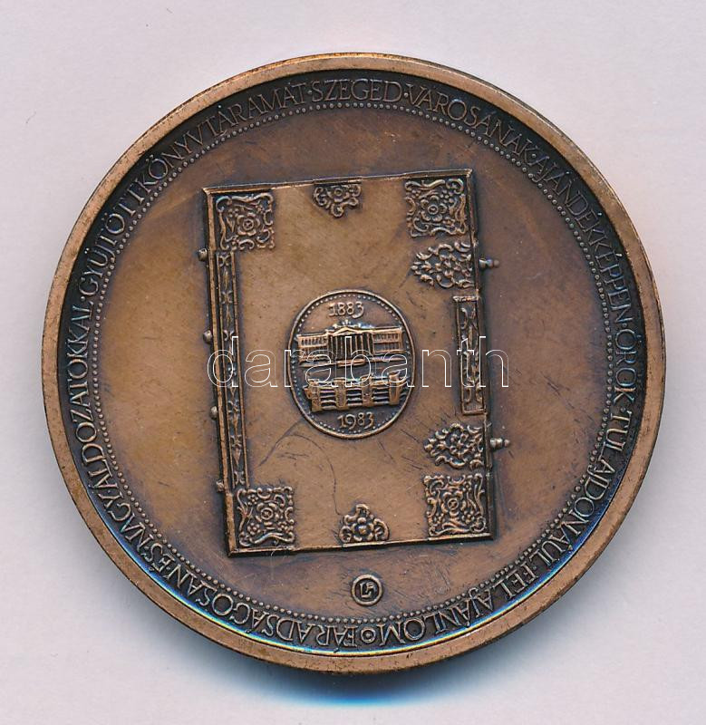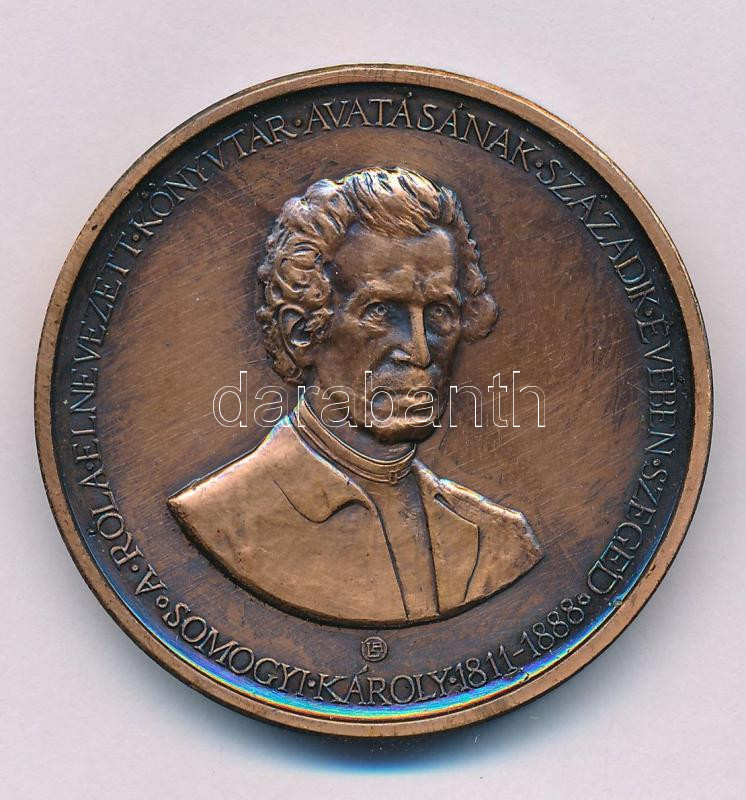 Leírás: Lapis András (1942-) 1988. "Szegedi Somogyi Károly könyvtár avatásának 100. évfordulója" kétoldalas bronz emlékérem (42,5mm) T:AU patina