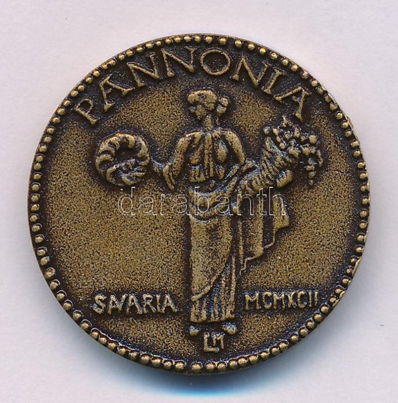 Leírás: Lessenyei Márta (1930-) 1992. "L AELIVS CAESAR / PANNONIA SAVARIA MCMXCII" kétoldalas, öntött bronz emlékérem (29mm) T:AU patina