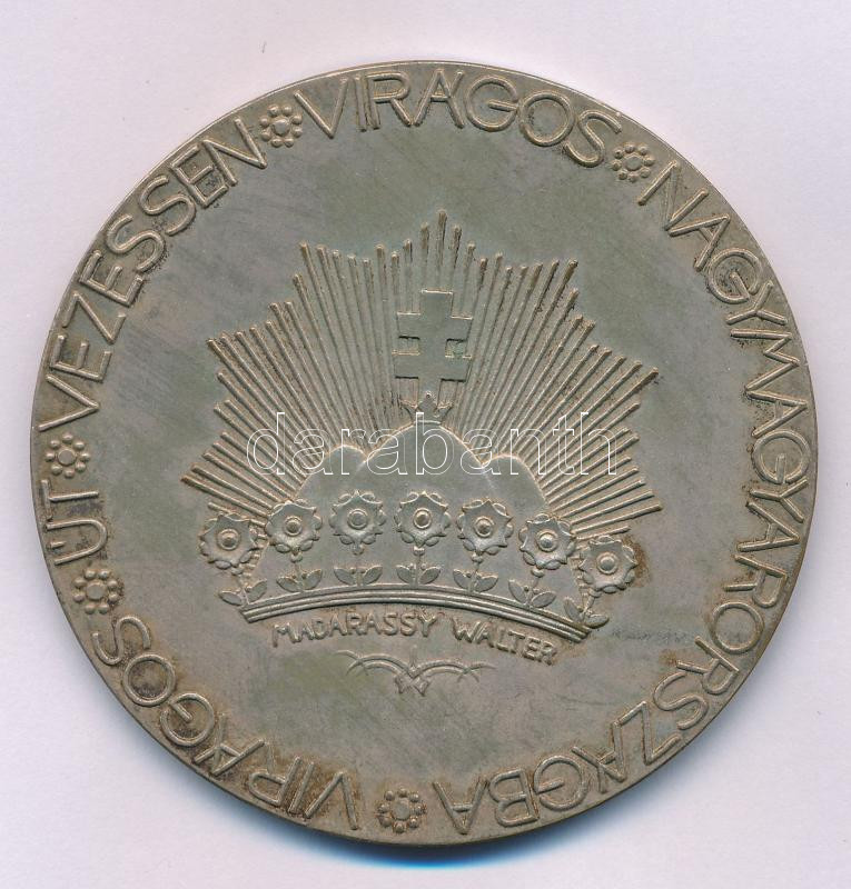 Madarassy Walter (1909-1994) 1930. "Virágos Budapest Virágos Magyarország Jutalomérme / Virágos út vezessen virágos Nagymagyarországba" ezüstözött bronz irredenta emlékérem (60mm) T:AU