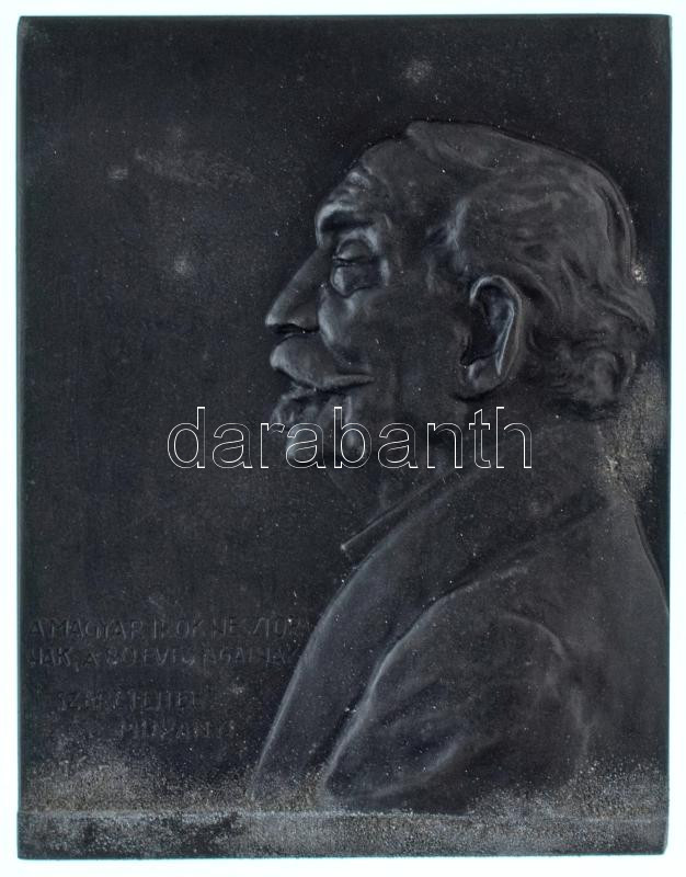 Hungary 1916. "To the Nestor of the Hungarian writers, the 80 years old Ágai from Murányi with love" Zn plaque. Sign.: Gyula Murányi (68x53,5mm) C:AU,XF corrosion