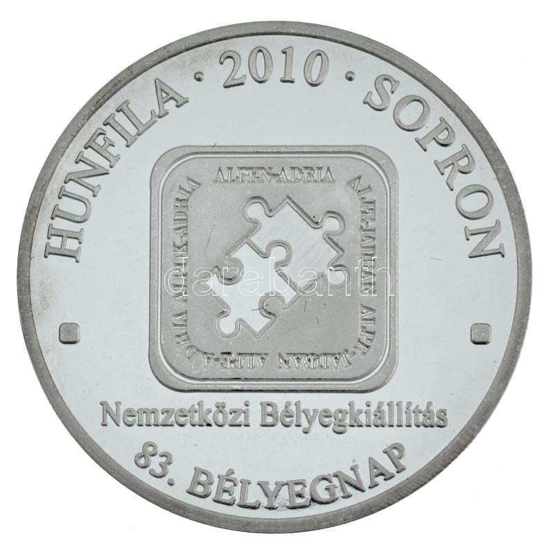 Leírás: Sz. Egyed Emma (1935-2016) 2010. "HUNFILA 2010 Sopron - Nemzetközi Bélyegkiállítás - 83. Bélyegnap " kétoldalas, ezüstözött fém emlékérem kapszulában, sérült dísztokban (42,5mm) T:AU, (eredetileg PP)