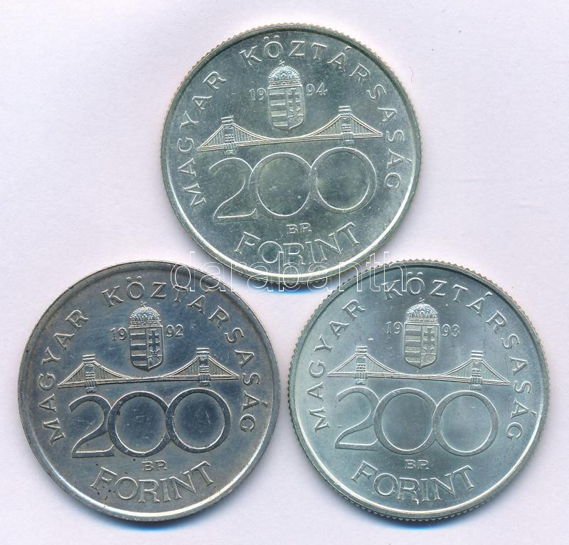 Leírás: 1992. 200Ft Ag "MNB " + 1993. 200Ft Ag "MNB " (3x) + 1994. 200Ft Ag "Deák " T:AU,XF