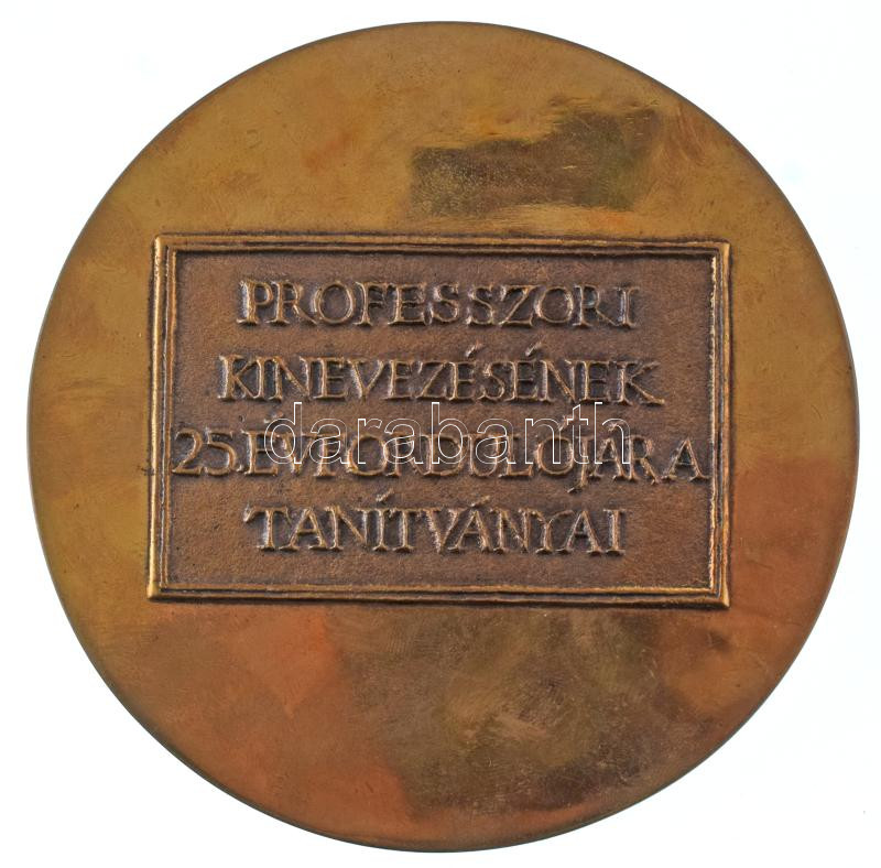 Lapis András (1942-) 1978. "FORTITER IN RE SUAVITER IN MODO - Prof. Dr. Petri Gábor 1978 / Professzori kinevezésének 25. évfordulójára - tanÃtványai" kétoldalas öntött bronz emlékérem (108mm) T:AU