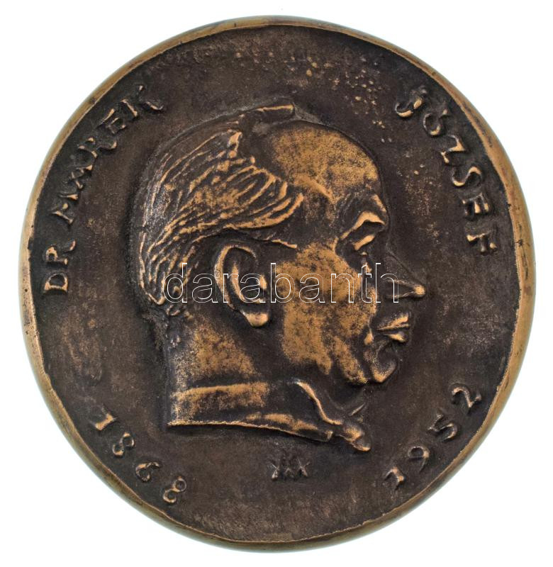 Madarassy Walter (1909-1994) 1952. "Dr. Marek József 1868-1952 állatorvostudományi emlékérem" kétoldalas önött bronz emlékérem. (~86mm) T:AU patina