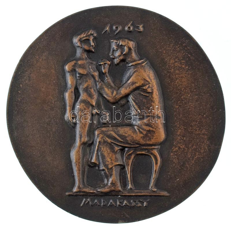 Leírás: Madarassy Walter (1909-1994) 1963. "Dr. Korányi Frigyes 1828-1913 / 1963" kétoldalas, öntött bronz plakett (82mm) T:AU