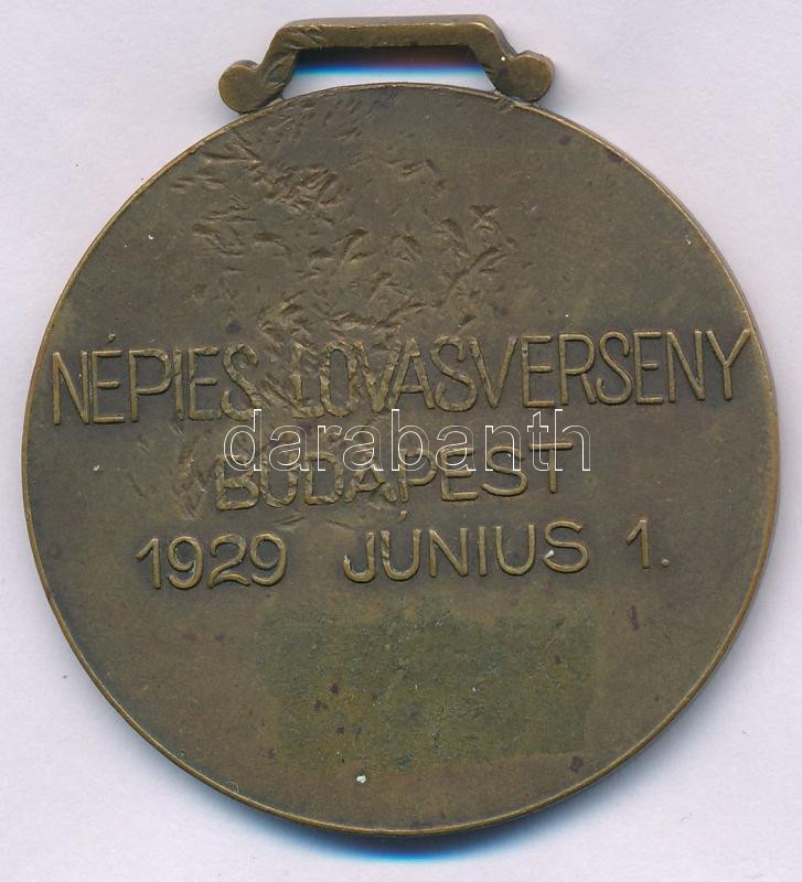 Leírás: 1929. "A Magyar Királyi Honvédelmi Miniszter Tiszteletdíja / Népies Lovasverseny - Budapest - 1929. június 1. " bronz emlékérem füllel (45mm) T:XF
