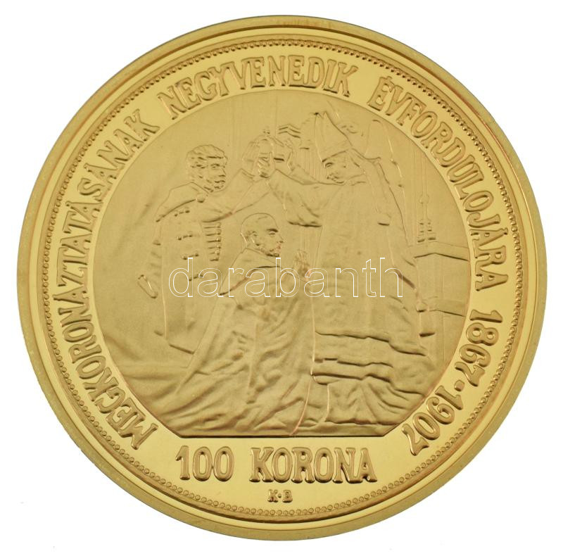 Leírás: DN "A legértékesebb magyar érmék - Ferenc József 100 Koronásának replikája" aranyozott Cu emlékérem kapszulában, "COPY" jelzéssel (40mm) T:PP